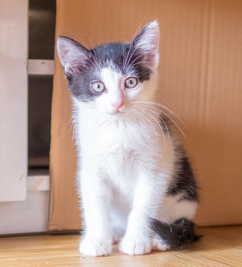 | 特徴(性格など) | 【仮名】あきたこまちちゃん 【性格】キレイなハチワレ&クリクリおめめ&女の子なとこが まさにテッパンなあきたこまちちゃん♪ ※今回の仮名はお米シリーズです(笑) このコも兄妹同様ビビリちゃんなのですが 寝ている時にこねくり回していますので 日に日に馴れてきて来ています(笑) おもちゃ遊びはみんなの後ろから見ていて おそるおそる手を伸ばしてます(笑) ウチだと他のベタ馴れにゃんこの勢いに負けて 距離が縮まらないので皆様に託そうと思います(反省) 同世代のにゃんことのお迎えを希望します♪ |