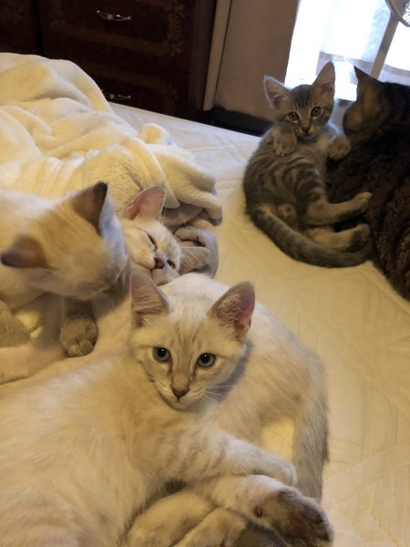 | 里親募集する理由 | 酪農家に住み着いた親猫を保護して手術しようとしたら 妊娠していたため、出産を見守り里親募集をすることになりました。 お母さんも間もなく手術をして里親募集の予定です。 |