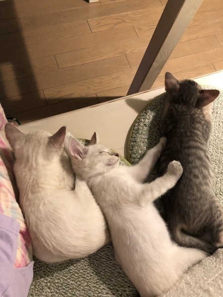 | 特徴(性格など) | 7月7日(日)12:00~16:00(最終申込15:30) ねこざんまい譲渡会に参加予定です! 《会場のご案内はこちら》 https://ameblo.jp/neko3mai/entry-12481253257.html 希望の猫ちゃんがいる場合は、12時に会場へお越し下さい。 先着順ではございませんが、同じ猫ちゃんに複数名のご希望者さまがいらっしゃる場合は、12時半でお見合い受付を締め切らせていただく場合がございます。 ※譲渡会ご来場につきまして、事前予約は不要です ★★★ご来場前に必ずご確認下さい★★★ 《里親様へお願いはこちら》 http://www.neko3mai.com/condition/condition.html 《家族募集中猫ちゃん一覧はこちら》 http://www.neko3mai.com/entrycats/entrycats.html ◆ 名 前 ◆ トマムくん ◆ 年 齢 ◆ 2ヶ月半 ◆ 性 別 ◆ 男の子 ◆ 処置内容 ◆ ・蚤取り1回 ・駆虫2回 ・検便2回 ・ワクチン1回 ・ウイルス検査 未 兄弟陰性 ・避妊去勢手術 未 ◆性格は?◆ お人形のようなかわいいお顔とフワフワの毛と、 とってもフレンドリーですぐに仲良くなれちゃう性格が愛らしいトマム君♪ こんなに無防備でいいの?というくらい人を疑うことを知らないピュアな子猫ちゃん♡ 猫じゃらしにものすごく反応して、いつまでも遊んでいるのに、 気づけば落ちるように寝ている天然参加猫☆ 兄弟達と2頭一緒に家族に迎えてくださるご家族を募集します! (美瑛君、トマム君、十勝君、小樽君、または若芽ちゃん) <ペット>ではなく共に暮らす【家族の一員】として、 生涯、トマムくんの健康と安全を守るために必要なことを、経済的な面も含めて 厭わずにご準備、ご対応いただける、お留守番のないご家族にお迎えいただきたく、 ご縁をお待ちしております。 (まだトマムくんが成長期で体調急変の可能性があるため、小さなお子様のいないご家族限定となります) |