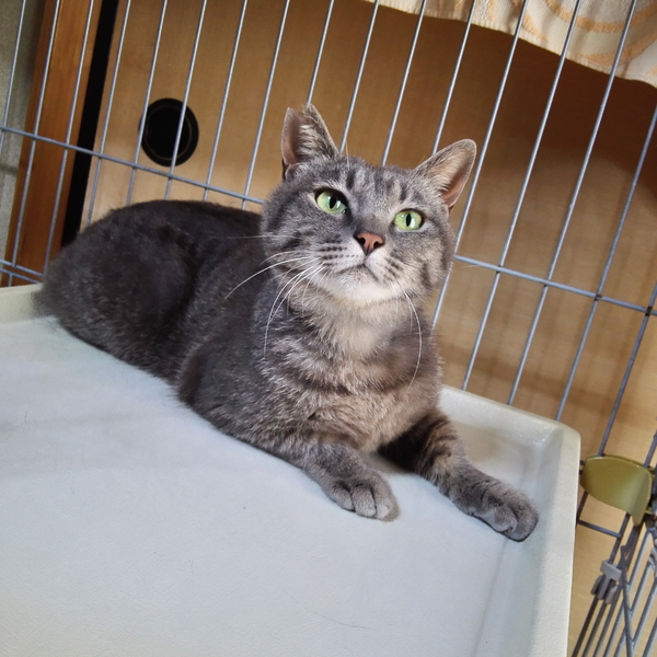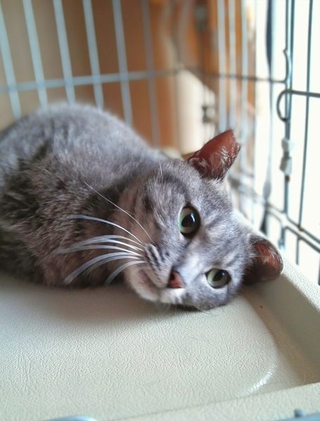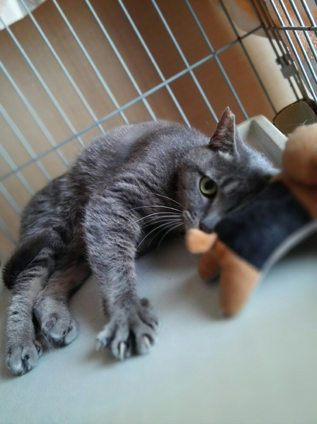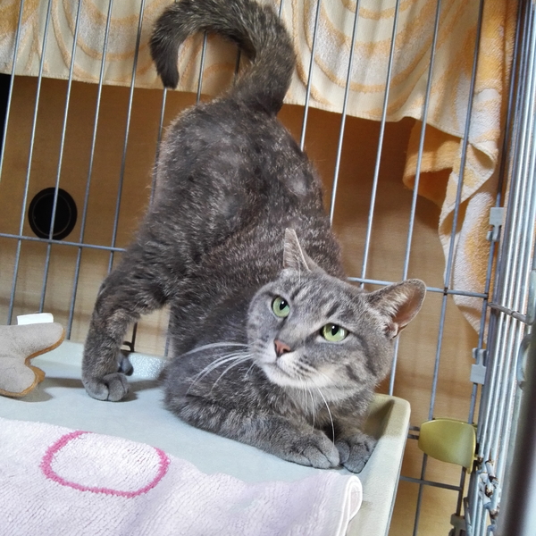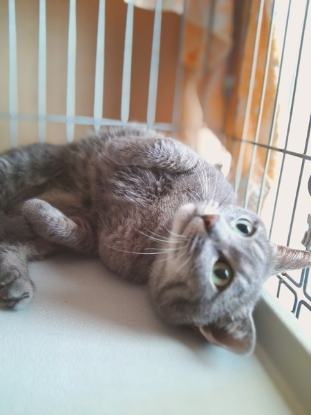 | 特徴(性格など) | きれいなブルータビーの女の子です。 とてもおりこうさんで、気質の優しい穏やかな猫さんです。人馴れも早く、毎日保護主さんが帰ってくるのを待っています。声をかけてやると体をくねらせて喜んでくれます。 エイズ⋅白血病ウイルス陰性 検便チェック済み レボリューションスポット済み |