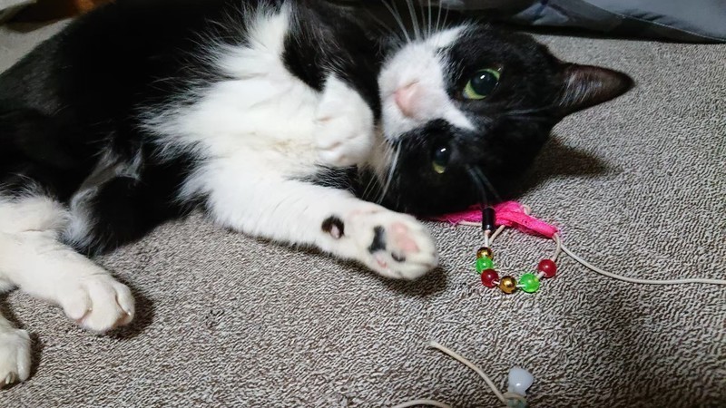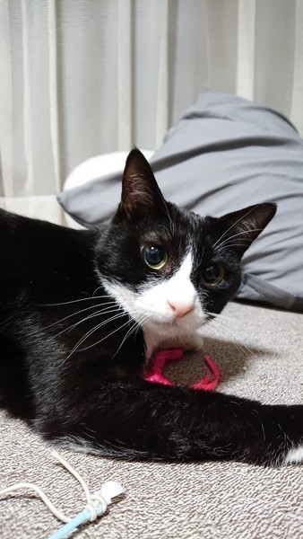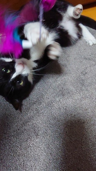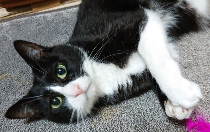 | 特徴(性格など) | 2018.5月生まれ(予測) 毛色:黒×白 グリーンの瞳はCOOLな凛としたツンデレ系女子♪ 甘えベタですがじゃらしで遊ぶのも大好き♪ 爪切りもちょっと文句を言いながらもさせてくれます。 ハチワレ好きさんには堪らない、魅力的な小柄な女の子です。 |