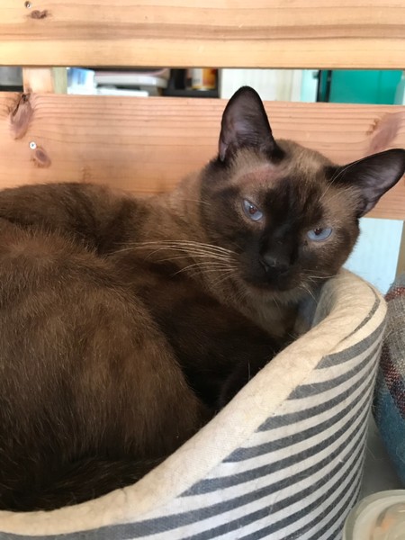 | 特徴(性格など) | ほんまに猫?!と言うくらいの神経質さの無さがウリです。 譲渡されたその日からヘソ天でグーグー寝ちゃう可能性あり(笑) 大らかで人見知り無し、猫見知り無し、犬見知りなし。環境の変化にもさほど動じません。 年齢不詳ですが、若い猫とも格闘遊びに余念がない推定おっさん猫。 手先を触られても、抱き上げられて仰向けにされても抵抗なしのなんでもありのにゃんです。 初心者には「猫ってこんなに扱いやすい生き物?!」と誤解を招く可能性があるかもしれませんが…(笑)初心者さんにもなーんの問題もなく飼い始める事ができますし、もちろん猫経験者さんでも、甘えんぼさんに家族になって頂きたい方には大抜擢です。 されるがままのおっとり、ど平和なシャム系にゃん!100匹に1匹レベルの扱いやすさで大当たり間違いなしの施設1の推しメンです! |