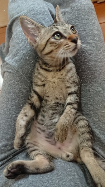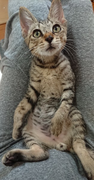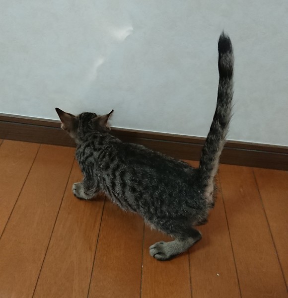| 特徴(性格など) | キジトラ柄の元気な男の子です。 食欲旺盛で甘えん坊です。 膝の上に乗ってきてゴロゴロと喉を鳴らします。 尻尾がとても長いです。 |