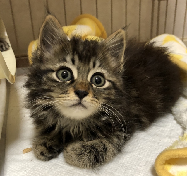 | 特徴(性格など) | 聖火リレー4兄弟姉妹 仮名は「セイ」です 男の子 2ケ月位 ふわふわ半長毛、しっぽは先までなが~くてまっすぐです。 子猫らしく元気いっぱいです。甘えん坊なようで、ゴロゴロと喉を鳴らしてくれます。 聖火リレー4兄弟姉妹「セイ」「カイ」「リー」「レイ」みんな仲良しですので、2匹一緒に里親様になってくださる方を希望しています。 【ウイルス検査】 猫白血病(FeLV)陰性 猫免疫不全症(FIV)陰性 【ワクチン接種】 1回接種済み 【医療行為】 ノミ・ダニ、お腹の虫駆虫済み トイレ躾済 |