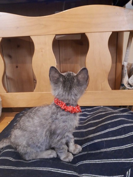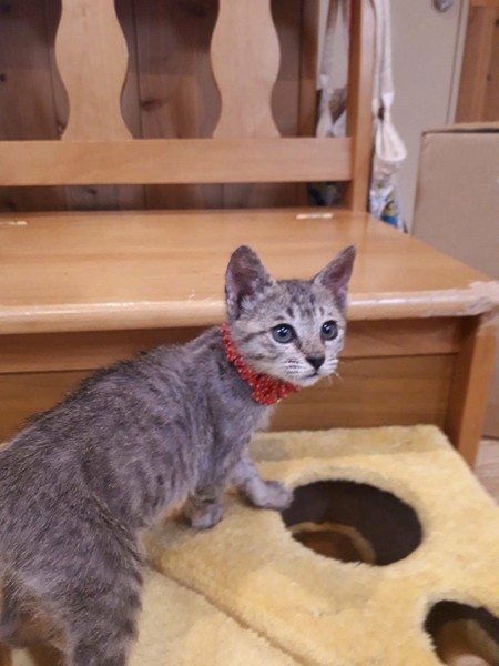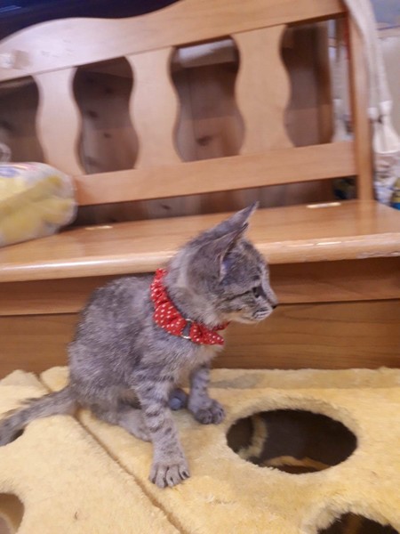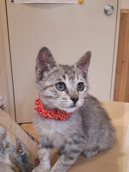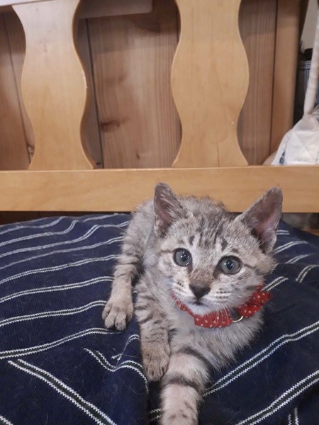 | 特徴(性格など) | 食欲旺盛で、子猫らしく元気いっぱいに遊び、人が大好きで抱っこするとゴロゴロ言います。犬、猫とも仲良くしています。 耳ダニ、ノミダニ駆除、虫下し済 白血病マイナス |