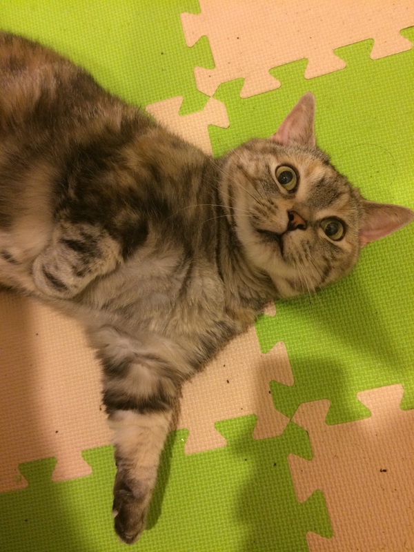 | 特徴(性格など) | キジトラのマンチカンです。 人なつこっくて、甘えん坊で、食欲旺盛で自由気ままに行動します。 |