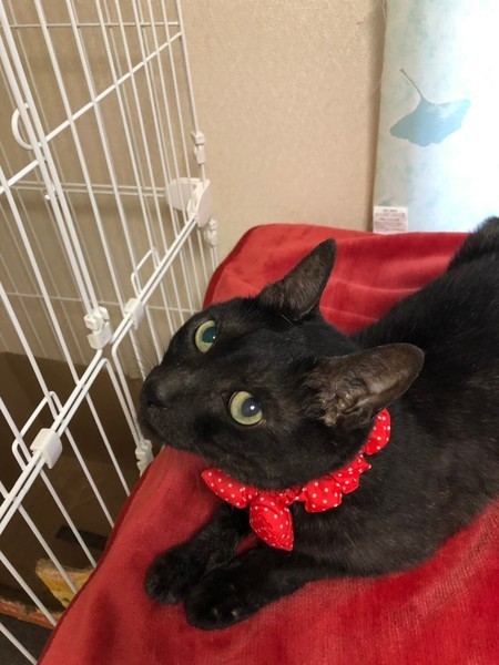 | 特徴(性格など) | 真っ黒な男の子です。 人に慣れていて、すりすり甘えん坊です。とても撫でられるのが大好きです。飼いやすい猫ちゃんです。たくさんの猫の中でも、ケンカもせずに、仲良く過ごせています。 どなた様か、ジンくんに会いにきてください。 お一人暮らしの方、シニア世代の方、お声をかけてください。 その他の方でも、ぜひ、気になった方は、連絡ください。 |
