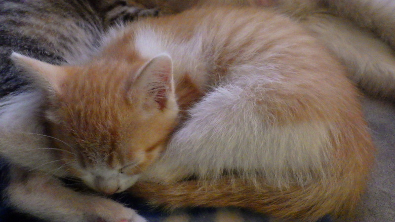 | 特徴(性格など) | 茶シロの男の子です。 自分から近づいてきては、膝の上で寝てしまう人懐こい性格です。 少し抜けていてマヌケなところがあるかわいいやつです。 成長時、猫の情緒が安定するとされる生後2ヶ月間は、母猫や兄弟達としっかり過ごさせました。 大きくなってからも感性豊かに育ってくれると思います。 活発に走り回り、モリモリ食べては寝てすくすく育っています。 |