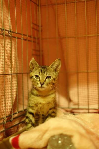| 里親募集する理由 | 和菓子屋さんの走行中の車のボンネットから鳴き声が聞こえてきて、停車させた後ボンネットから救出されました。 | ||