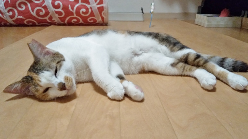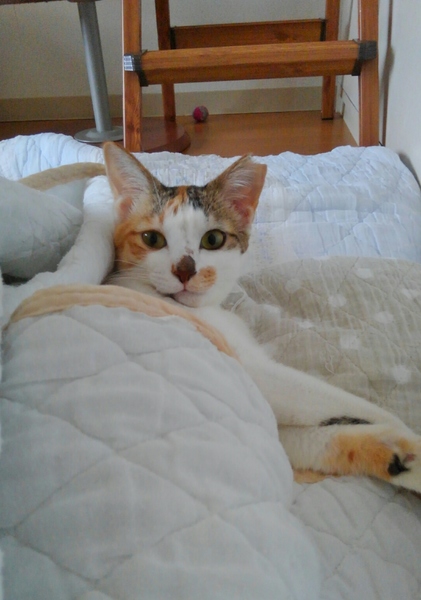 | 特徴(性格など) | 初めての人には人見知りをしますが本当はとても甘えたさんです。 慣れるとなでてあげるとすぐにグルグルが出ちゃい、夜は一緒の布団で寝ます。 スリスリもしつこいほどしてきます。 ねずみのオモチャで良く遊び元気いっぱいです。 比較的小柄で動きも女の子っぽくて色っぽい子です。 ぜひ見てやって下さい。 |