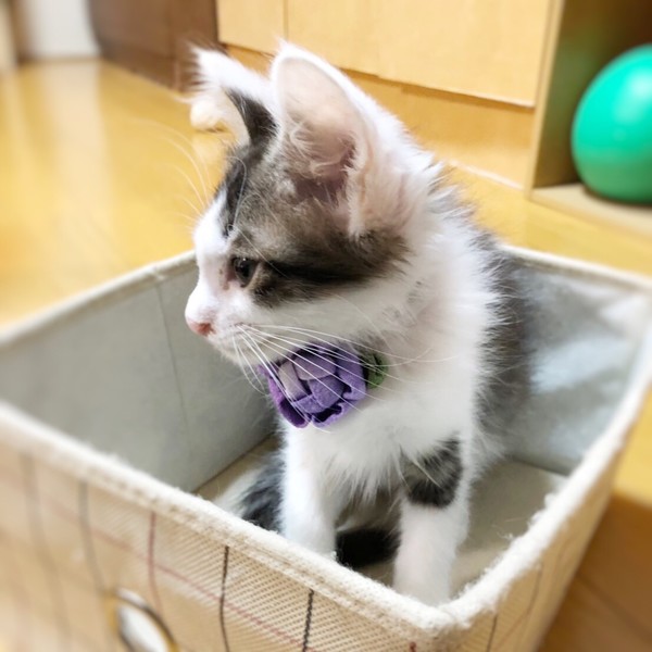 | 特徴(性格など) | 長毛のかわいい子猫ちゃんです。ミルクで預りさんに、育ててもらいました。人のあとをついて回るかわいい子猫ちゃんです。膝の上が大好きです。 |
