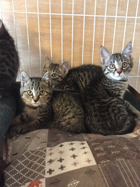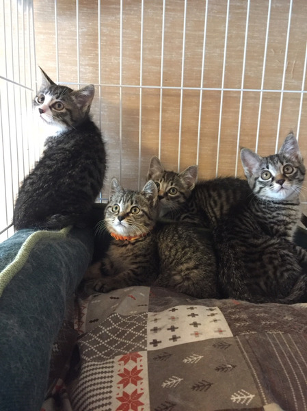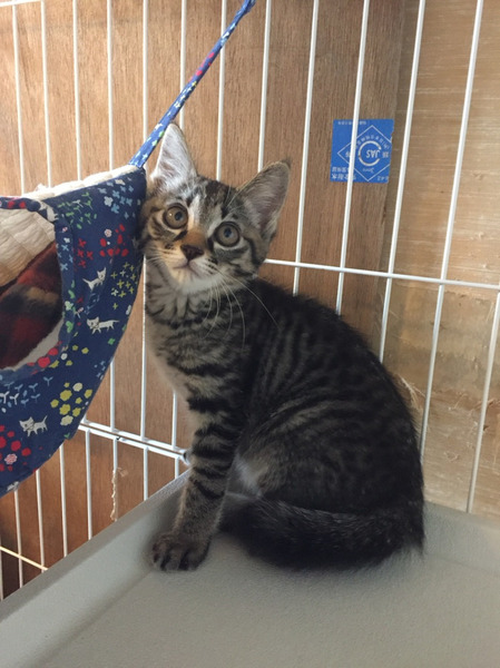 | 特徴(性格など) | シャー!にゃによ アタチは、元野良猫の意地は忘れにゃいわよ だから、シャー!ちしてるんだかりゃ どう?怖いでしょ? アタチにびびってるんでしょ? いや、ちっとも真顔 (ひょいと抱っこしながら) 容易いツンデレちゃん(笑) --------------------------------------------- ツンデレ系のかわいいキジトラ子猫ちゃんのご紹介です。 なにせ、キョウダイ達が見分けが付かないほどそっくり!のキジトラ系キョウダイですので、同じく譲渡会に出場するりんちゃんとそうくんが、おなじキョウダイとなります。 もう1匹の子は、キョウダイではない子と4匹一緒に保護生活をしています。 あさちゃんですが、まだ一丁前に、シャー!と威嚇をしてきます。 しかし、これはただの空威張りで、いっさい、手を出してきたり噛み付いたりしませんのでご安心下さい。 無理やり捕まえて、ムギュっと抱いてしまえばOK(笑) お母さん猫が、大変気の強いお母さんだったので(母猫さんはTNR済み)母親譲りの気の強さがあるのかもしれませんね。 こういったところは、ツンデレ好きさんには、堪らないと思います。 ケージが、安心出来る場所だと認識しているので、ケージがあると良いと思います。 ケージは貸し出しもしておりますので、お声がけください。 仲良し仲間達一緒に迎えてくださっても、1匹飼いでも構いません。 もし、余裕がある方は、子猫は2匹飼いの方が楽ちんです。 子猫同士で、遊びあって、成長して行きますから。 パートタイムなど半日ぐらいのお留守番ならば問題ないと思います。 お仕事をお持ちのご家庭は、スタッフにご相談ください。 先住猫さんがいても全く問題ありません。 ツンデレだけど、抱っこもナデナデも出来ちゃうかわいいあさちゃんを、どうぞよろしくお願いします。 |