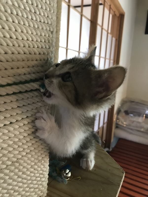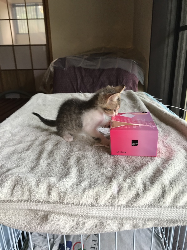 | 特徴(性格など) | キジ白。1番小さいですが、元気いっぱいです。 | ||