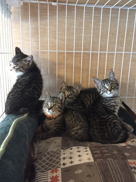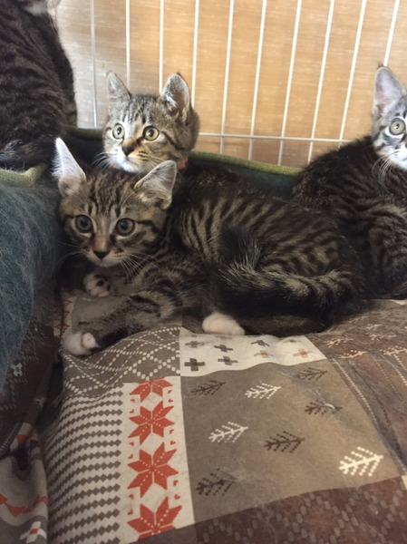 | 特徴(性格など) | アタチは、りんちゃんよ アタチは、ちょっとビビリな所があるの。 こんな性格してるから、絶対お外では生きては行けなかったと思うの。 だから、保護してくれてありがとうにゃ キョウダイ達と毎日一緒で、ご飯も美味しいし、毎日幸せだけど。。。 やっぱり、ほんとーの家族欲しいにゃ。。。 控えめなアタチだけど、一生懸命がんばるから、アタチを家族にしてくだしゃい ――――――――――――――――――――――― 美猫のキジ白子猫、りんちゃんのご紹介です。 なにせ、キョウダイ達が見分けが付かないほどそっくり!のキジトラ系キョウダイですので、同じく譲渡会に出場するりんちゃんとそうくんが、おなじキョウダイとなります。 もう1匹の子は、キョウダイではない子と4匹一緒に保護生活をしています。 りんちゃんですが、多分キョウダイの中では一番臆病で、まだビクビクしています。 しかし、保護生活にも徐々に慣れてきて、普段は仲間達と元気よく遊んでいます。 抱っこもナデナデもさせてくれる優しい子です。 ケージが、安心出来る場所だと認識しているので、ケージがあると良いと思います。 ケージは貸し出しもしておりますので、お声がけください。 仲良し仲間達一緒に迎えてくださっても、1匹飼いでも構いません。 もし、余裕がある方は、子猫は2匹飼いの方が楽ちんです。 子猫同士で、遊びあって、成長して行きますから。 パートタイムなど半日ぐらいのお留守番ならば問題ないと思います。 お仕事をお持ちのご家庭は、スタッフにご相談ください。 先住猫さんがいても全く問題ありません。 臆病で少しビビリな所も、ご家族の元でうんと可愛がって貰ったら変わっていきます。 どうぞ、かわいいりんちゃんを、よろしくお願いします。 |