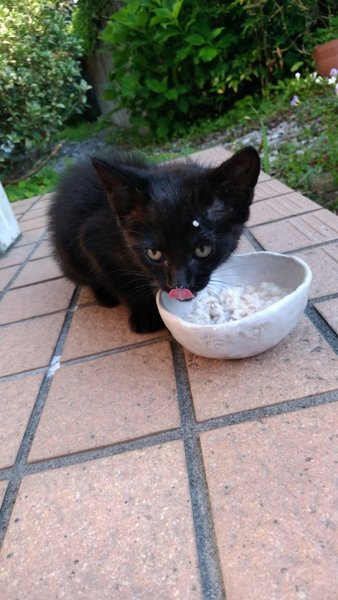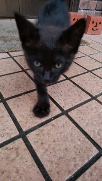 | 特徴(性格など) | 遊び好きの人間大好きな黒猫の男の子です。しっぽが長いです。 | ||