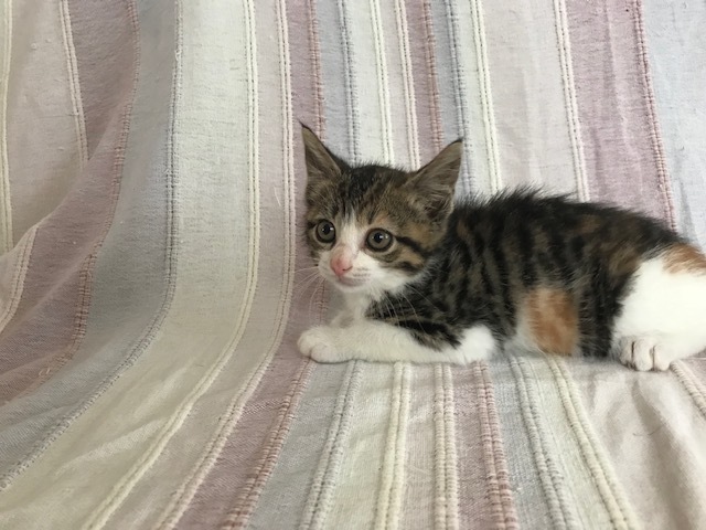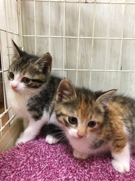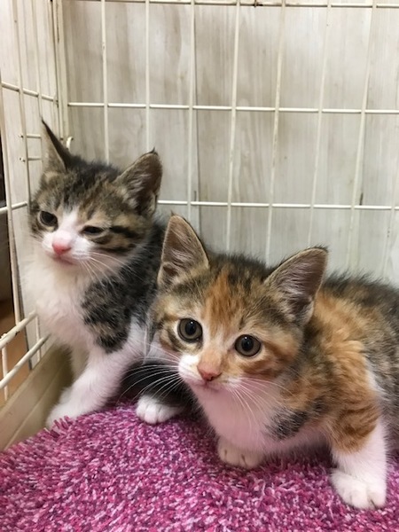 | 特徴(性格など) | 縞三毛の姉妹猫です。尻尾は長く、二匹とも人なつこくて元気な子達です。 | ||