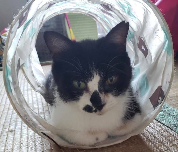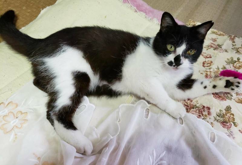 | 特徴(性格など) | 仮名: のりまき 毛色: 黒白 性格: とても明るく、初対面でもスリスリしてくれるフレンドリーな子です。 多頭飼育の環境にいましたので、先住猫ちゃんがいても、うまく付き合えると思います。 |
