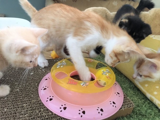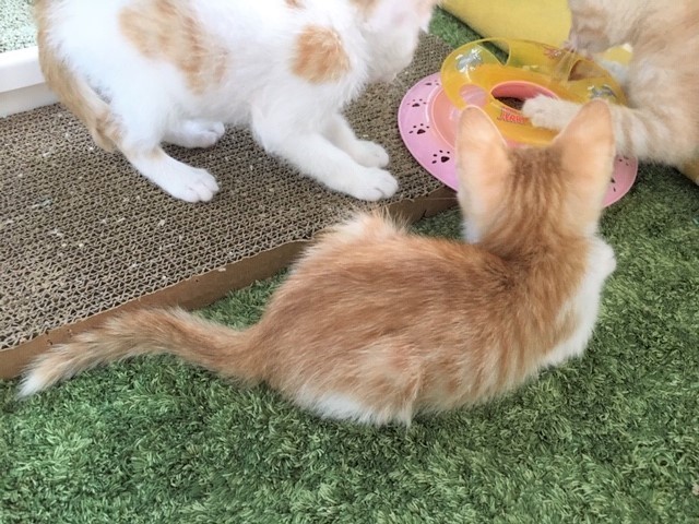 | 特徴(性格など) | 豆二郎くん オス 4月下旬生まれ エイズ・白血病共に陰性 ワクチン1回済・検便・ノミダニ駆虫済 4きょうだいの1匹です 朝から晩まできょうだい達とにゃんプロをやって遊ぶ日々。 遊ぶ、食べる、寝る、遊ぶ、食べる、寝る… 仔猫ですので性格まではわかりませんが、とにかく元気いっぱい遊ぶ日々です。 まだ仔猫ですのでお留守番が少なく、何かあった時に夜間救急にも連れて行って下さる方、 「ペット」や「オモチャ」では無く、「家族」としてお迎え頂けるお家とのご縁をお待ちしています。 |
