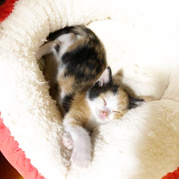 | 特徴(性格など) | かわいい三毛猫の女の子です。生後100グラムのときから、夜中も、起きて預かりさんが、ミルクで育ててくれました。人が大好き。甘えん坊で、ついてきます。 膝の上で寝るのが大好きです。 あんこちゃんに、ぜひ、会いにきてください。 |