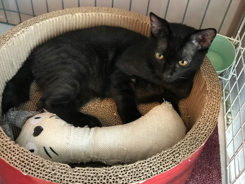| 特徴(性格など) | 仮 称:こしあん ♂ 特 徴:黒のベースに足元にママ(キジトラ)似の縞が入っています。 全体的に黒に近い濃いグレー ワクチン:近日中に接種予定 健康状態:体重2.2㎏。 性格は甘えん坊でやんちゃです。 ママ猫は「人間は怖い」と厳しく教育した為、保護当初は人を見ると「シャー」と威嚇していましたが、今はそばを通ると「遊ぼ」と手を出してアピールします。 まだケージの外は怖い様ですが、少しずつ子猫らしくなってきました。 こんなシャイな子ですが、家族の一員として暖かく迎えて頂ける方のご連絡をお待ちしています。 |