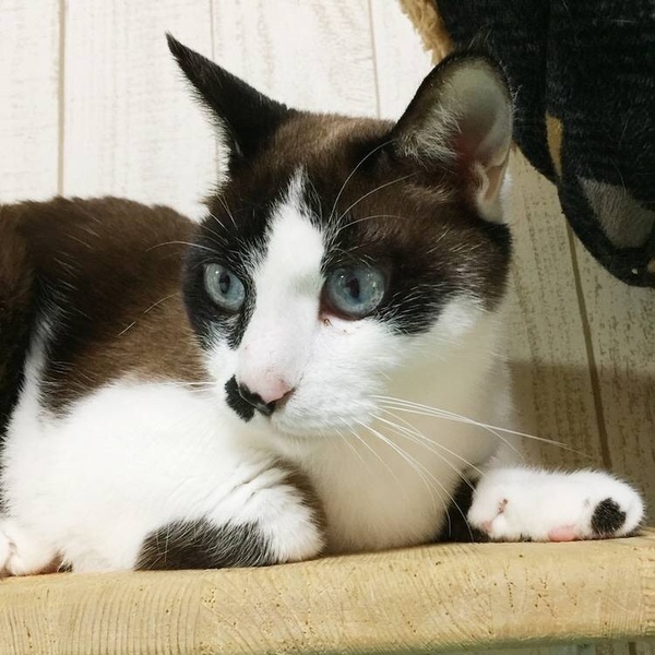 | 特徴(性格など) | アイスブルーの瞳、ラグドール風、イケメンくん、人は大好きで 飼いやすい子です。 1匹飼い希望です。 ただ一緒に残されたルーナくんとは仲良しです。 (2019/8/26ルーナくんは里親様決定しました。) |