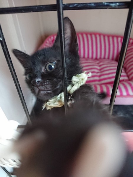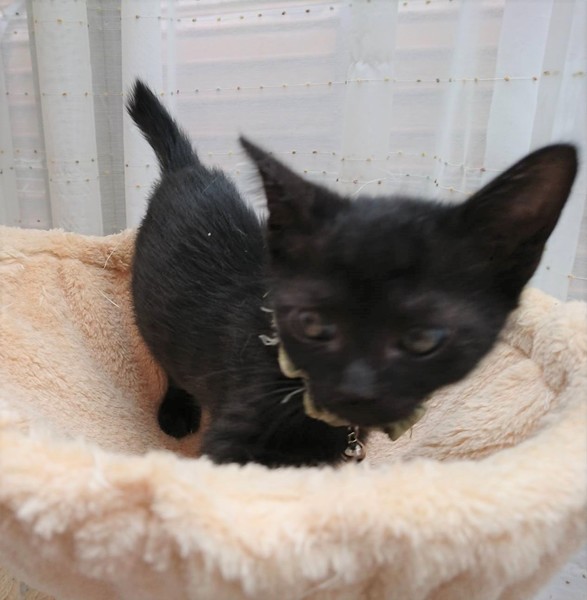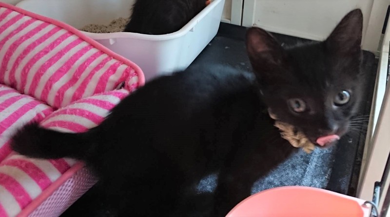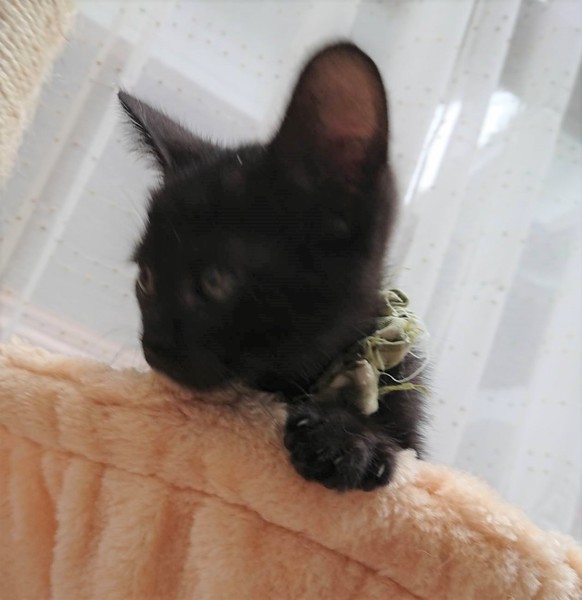 | 特徴(性格など) | 仮名:リズムくん オス 黒 推定5月初旬生まれ エイズ・白血病ウイルス 共に陰性 ワクチン接種済み 便検査済み トイレしつけ済み とても人に慣れていて、甘えん坊の男の子です。 抱っこが好きで、よじ登ってきます。 写真を撮りたくても、すぐに飛び付いてくるので撮れないくらいの甘えん坊。 兄弟のタクトよりか、少し怖がりな面があります。 |