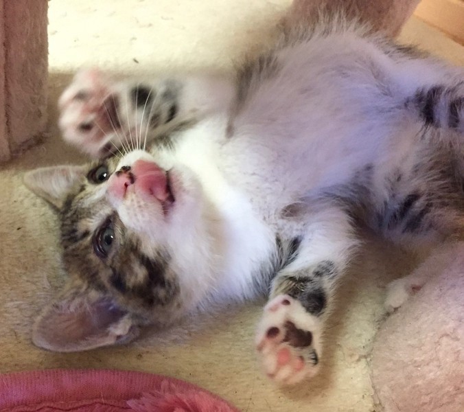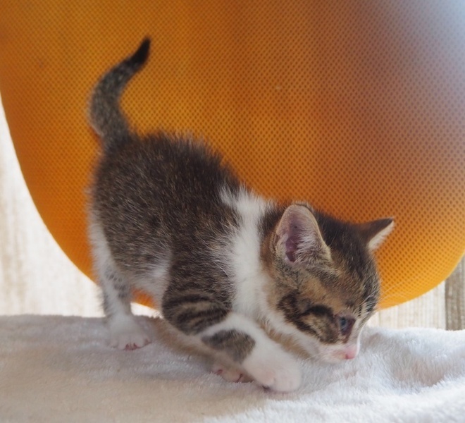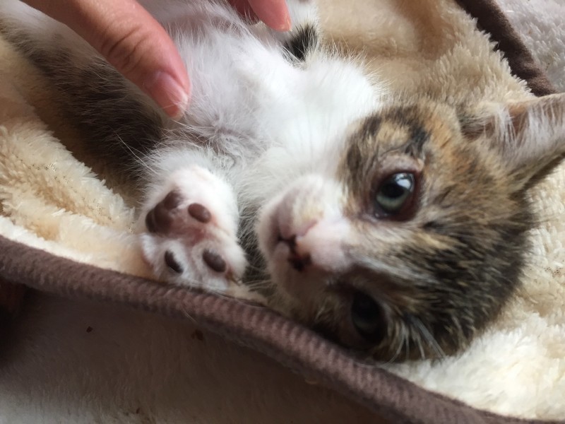 | 特徴(性格など) | 天真爛漫♪陽気な女のコ♡「プッ」ちゃん♪ 現在、ドライフードを置き餌として、栄養補給のため、一日3~4回程度のパウチを与えています。 <推定誕生日:5月上旬> |