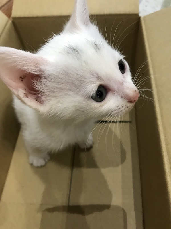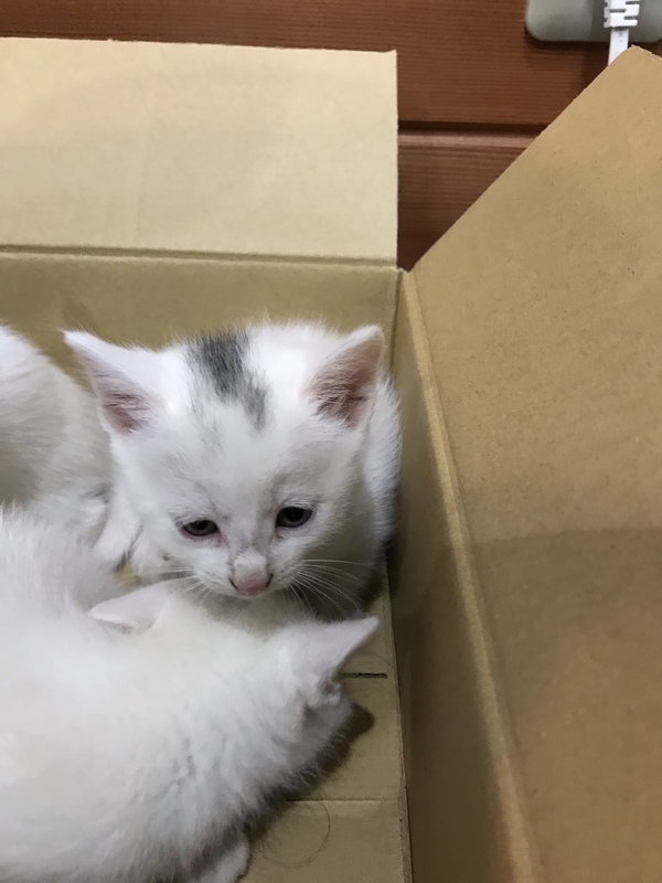 | 特徴(性格など) | 全身白です。おでこのあたりに薄く黒毛がありますが、だんだん薄くなってきています。 | ||