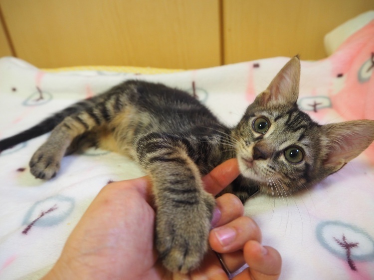 | 特徴(性格など) | ちょっぴり天然?!な「リズム」くん♡ ひょうきんな甘えん坊♪ 現在、ドライフードを置き餌として、栄養補給のため、一日3~4回程度のパウチを与えています。 <推定誕生日:4月末> |