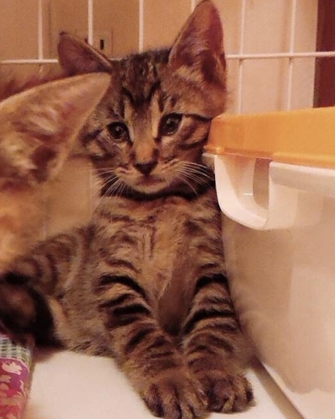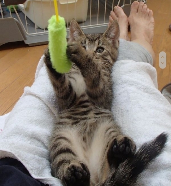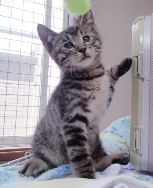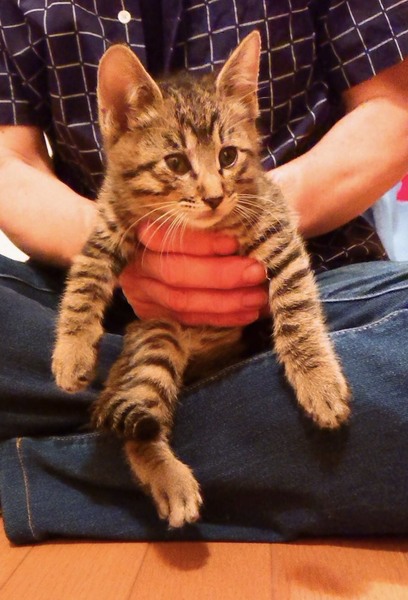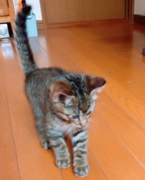 | 特徴(性格など) | キジトラ模様。長くて真っ直ぐの尻尾。。抱っこや膝乗りオッケー!甘えん坊ごろ刷り。人懐こくお遊び大好きです。 こちらはもう一匹の三毛情報です。 →◎三毛♀️男子に劣らぬお転婆姫 ※男の子に負けない位お転婆さんの活発女子。人慣れもしてます。 |