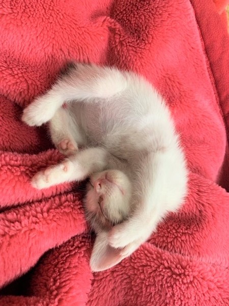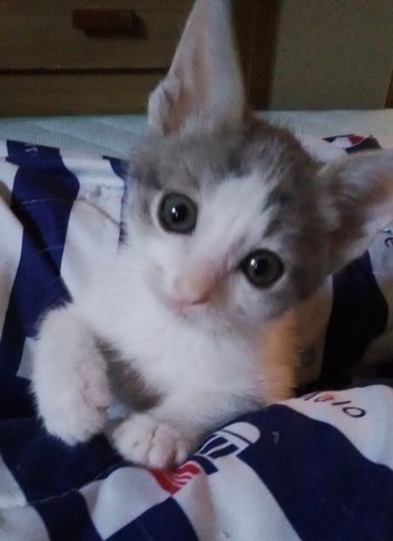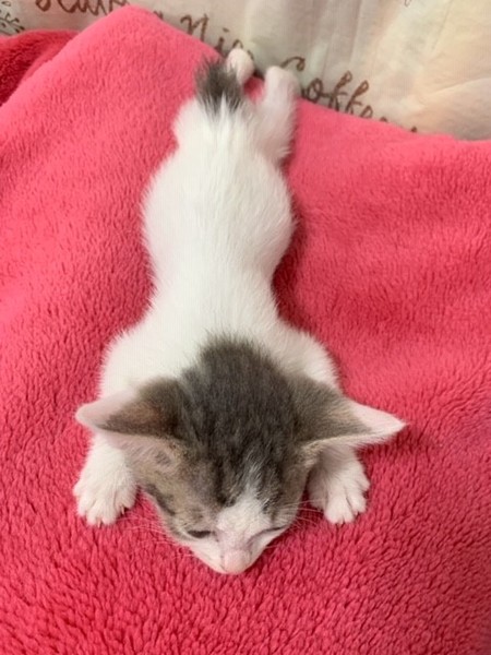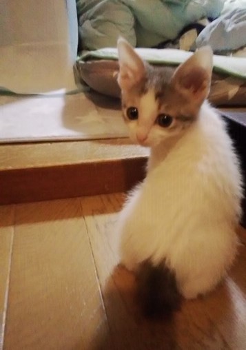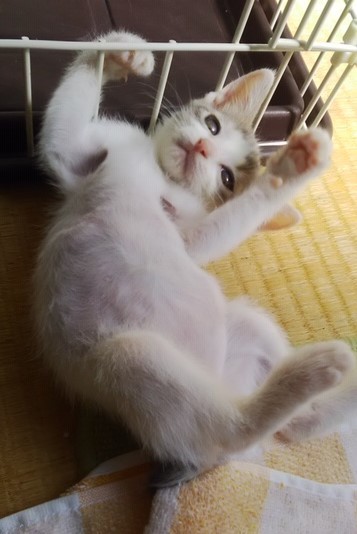 | 特徴(性格など) | 仮名:みいぃちゃん 性別:メス 毛柄:白キジ エイズ・白血病共に陰性 ワクチン1回済・検便・ノミダニ駆虫済 性格:おっとり、人懐こい甘えん坊 きょうだい2匹一緒にお迎え頂けると嬉しいですが、1匹でも応相談で まだ仔猫ですのでお留守番が少なく、何かあった時に夜間救急にも連れて行って下さる方、 「ペット」や「オモチャ」では無く、「家族」としてお迎え頂けるお家とのご縁をお待ちしています。 |