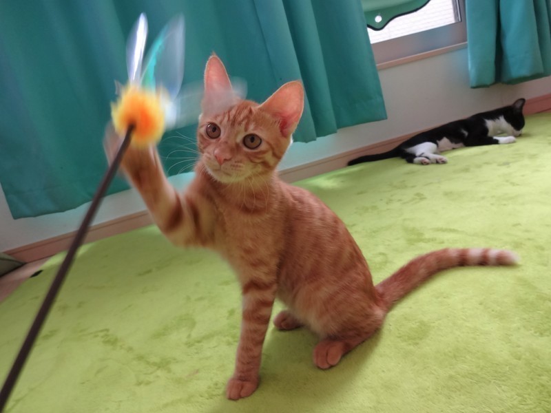 | 特徴(性格など) | 【仮名】トムくん 【性格】ビビりな部分がありますが、猫じゃらしの楽しさを知り、走って、走って♪猫じゃらしをぴょんぴょん追っかけるんです♪猫じゃらしの時は、お膝に乗ってくれます☆☆段々と人間にも慣れてきたようです(^^)ご飯頂戴っ!とおねだりも覚えたんです☆日に日に甘え方を覚えているようです。 環境が変わると隠れてしまう可能性があるので、トムくんのペースで馴れるのを見守って下さる里親様を希望します★ |