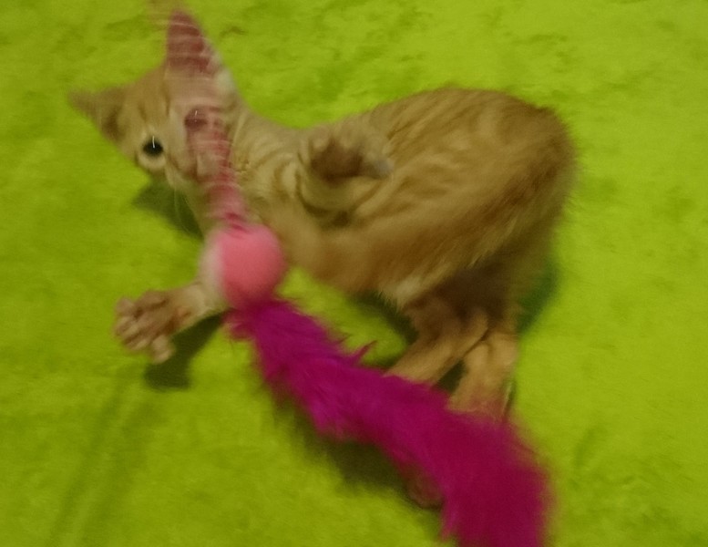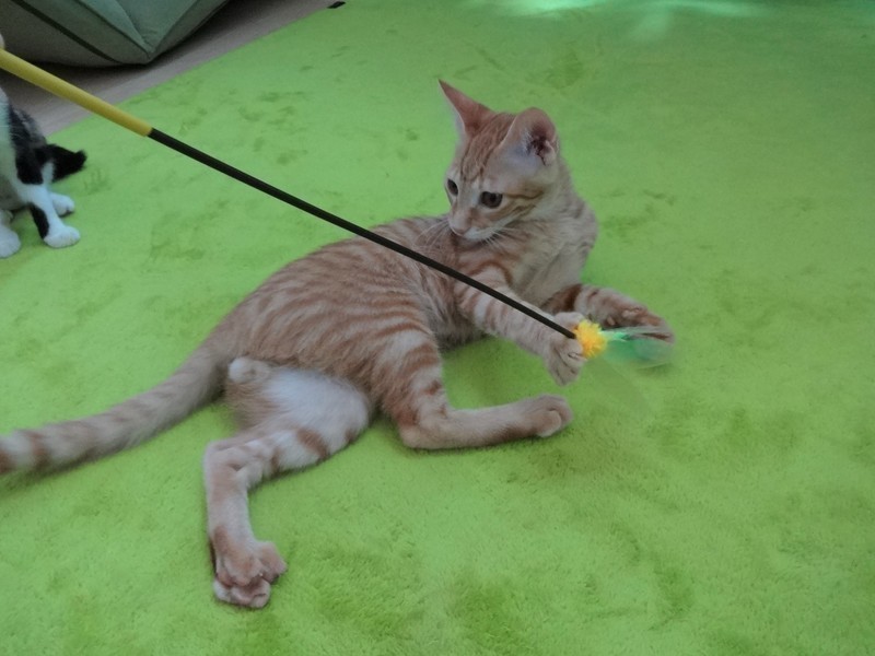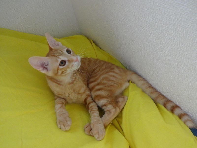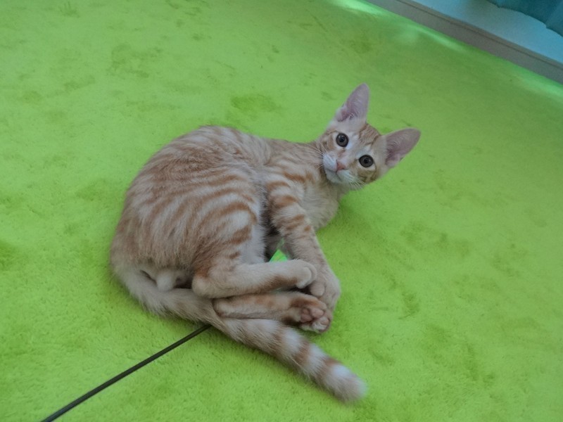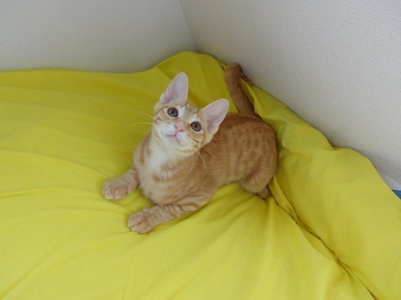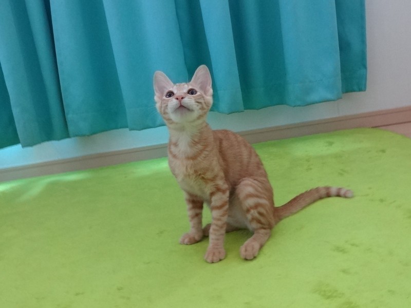 | 特徴(性格など) | 【仮名】ジェリーくん 【性格】ビビりな部分がありますが、猫じゃらしの楽しさを知り、走って、走って♪猫じゃらしをぴょんぴょん追っかけるんです♪猫じゃらしの時は、お膝に乗ってくれます☆抱っこもちょくちょく出来るんですよ(^^)☆段々と人間にも慣れてきたようです(^^)ご飯頂戴っ!とおねだりも覚え,脚にスルスリッ♪☆日に日に甘え方を覚えているようです。 環境が変わると隠れてしまう可能性があるので、ジェリーくんのペースで馴れるのを見守って下さる里親様を希望します★ |