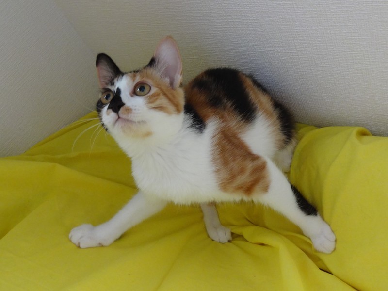 | 特徴(性格など) | 【仮名】まなちゃん 【性格】ビビりな部分がありますが、猫じゃらしの楽しさを知り、走って、走って♪猫じゃらしをぴょんぴょん追っかけるんです♪猫じゃらしの時は、お膝に乗ってくれます☆☆段々と人間にも慣れてきたようです(^^)ご飯頂戴っ!とおねだりも覚えたんです☆日に日に甘え方を覚えているようです。 環境が変わると隠れてしまう可能性があるので、まなちゃんのペースで馴れるのを見守って下さる里親様を希望します★ 兄弟猫(白黒かなちゃん・茶トラのトム&ジェリー)と仲良しの為、2匹でのお迎えを希望します。 環境が変わると隠れてしまう可能性があるので、まなちゃんのペースで馴れるのを見守って下さる里親様を希望します★ |