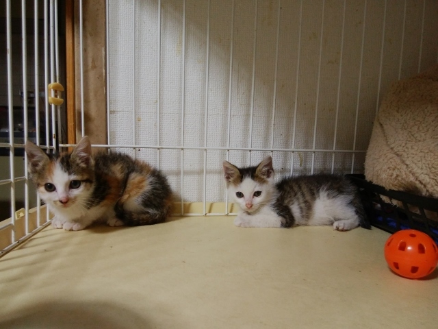 | 特徴(性格など) | 【仮愛称】 風太君 元気満々の男の子。 兄妹の子と取っ組み合ったり、走り、ジャンプし何でもおもちゃにして遊びます。 抱っこするとゴロゴロゴロが聞こえてきます。 【仮愛称】 やわらちゃん ちょっとシャイで食いしん坊の女の子です。 動くおもちゃを見ると夢中になって遊びます。 たくさんの猫と一緒にいるのでどの猫とも仲良く出来ます。 近日中にワクチンを予定しています。 エイズ・白血病検査 : 陰性 ノミ駆除 : 済 検便 : 済 健康状態良好 食欲旺盛 トイレ : しつけ済 小さい子なので在宅時間の多い方を希望します。 お問い合わせの際は、家族構成(年齢)・在宅時間・お住まいのペット飼育の不可・飼育経験を お知らせ願います。 |