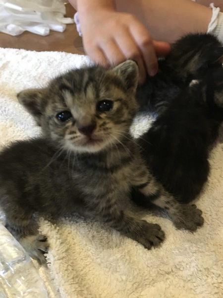 | 特徴(性格など) | トラ猫の赤ちゃんです。 おとなしくて、とっても可愛いです。 まだ小さくてミルクを飲んでいる状態ですが、もう少ししたら離乳できそうです。 |