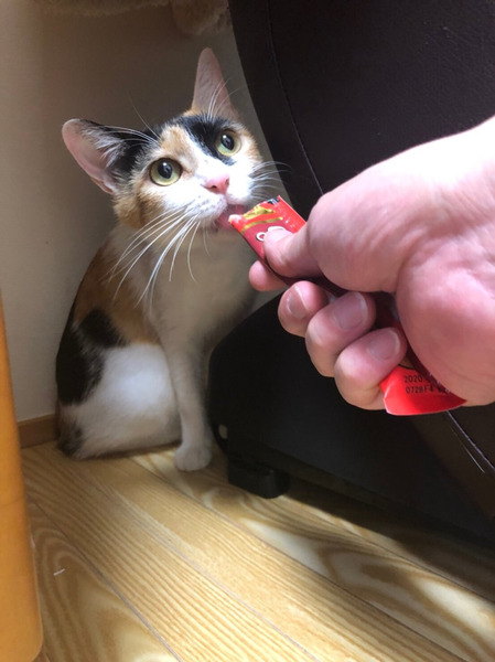 | 特徴(性格など) | わたしは、ムムよ 今回の譲渡会には、私の娘達(ミミコ、メメコ、トトコ)も参加するからよろしくにゃ。 私のお乳を見てくれたらわかると思うんだけど、4匹の子供達を懸命に育てたわ。 とっても大変だったわ。 でも、子供達も無事に大きくなって、今、独身生活謳歌中にゃうよ わたしね、まだ家猫生活はビクビクしちゃってるけど、食いしん坊だから、オヤツに直ぐに釣られちゃうの。 あと、猫のお友達が大好きで、すり寄ってアピールするんだけど、いつもシャー!って言われちゃうのよね。 でも、そんなのへっちゃらよ わたし、もっとこれから家猫としてがんばるから、こんな私を受け止めてくださるご家族を待ってます。 よろしくにゃ ――――――――――――――――――――――――― 4匹の子猫を立派に育て上げた三毛猫のママにゃんことムムちゃんのご紹介です。 今回参加するナムちゃんと姉妹であり、そして、ムムちゃんの育て上げた子供達も一緒に、譲渡会に出場します! ムムちゃんの子供達は、ミミコ、メメコ、トトコです。 詳しくは、当会のブログをご参照ください。 ムムちゃんを保護した経緯は、多頭崩壊現場でした。 ゴミ屋敷の押入れの中に、子供達を隠して、懸命にお乳を与えている所を、子供達と一緒に全匹レスキューいたしました。 ムムちゃんは、とても良いお母さんでした。 ムムお母さんは、とても過保護でしたので、子供達をいつも必死に守り抜いていました。 子供達も無事に大きく、なり、子供達を離しました。 そして、独身生活がスタート! 子育てしていた時は、それこそ目をギラギラさせて、子供達を守ろうと必死でしたが、避妊手術を終え、晴れて独身となったムムちゃんは、徐々に穏やかになって行きました。 まだ家猫生活にビクビクしていて困惑しているようですが、食いしん坊さんなので、ちゅ〜るがあれば簡単に釣られてしまいます。 度胸はあるようで、ご飯もペロリと完食! そして、ムムちゃんですが、他の猫が大好きです。 自分からすり寄ってアピールします。 特に、年上のオス猫さんが好きなようです。 多頭現場出身なので、猫同士の社会化は完璧です。 他の猫に擦り寄り、シャー!と威嚇されると、ゴロンと床に寝そべり、敵意はないアピールをするムムちゃんです。 とても賢い子だと思います。 私(代表)なんかは、ムムちゃんをムギュっ!と捕まえて抱っこしてしまいますが、迎えてくださる里親様は、ゆっくりゆっくりと仲良くなっていって欲しいと願います。 ケージには慣らしてありますが、ケージは直ぐに使わなくなりそうです。 ですから、ケージは、あってもなくてもどちらでも良いと思います。 専用部屋だけは、ご用意をよろしくお願いします。 もちろん、お留守番もOKです。 子育てを一緒懸命に頑張ってきたムムちゃんに、幸せな第二の猫生をお与えください。 どうか、どうか、よろしくお願い申し上げます。 |