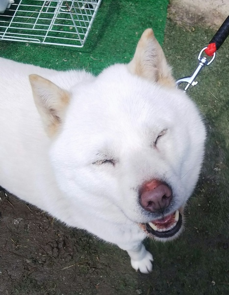 | 特徴(性格など) | 13キログラムの北海道犬の女の子です。お散歩に連れてって〜と手招きして人を呼ぶ姿がとてもかわいいです。ちょっとぽっちゃり気味なところと真っ白で見事な毛並みがチャームポイントです。トイレはお散歩でしますし、他の犬とも友好的でとってもいいこです。ぜひ、この女の子に会いにきて一緒にお散歩してみてください。 | ||