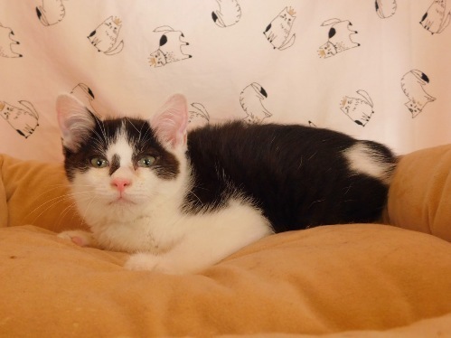 | 特徴(性格など) | 【仮名】タルトくん 【性格】ラスクちゃんと兄妹で何でも譲ってあげちゃう思いやりのある男の子です。 奥手でおっとりした性格なのか、猫じゃらしは見ているだけの事が多いのですが、本当は遊びたくて仕方ないんです! ラスクちゃんが積極的な分、とっても控えめな男の子に見えてしまいますが、環境に馴れ成長と共に頼もしいメンズになる事でしょう♪ 兄妹のラスクちゃんか同世代のにゃんことのお迎えを希望します♪ 先住猫ちゃんのいるオウチもOKです☆ |