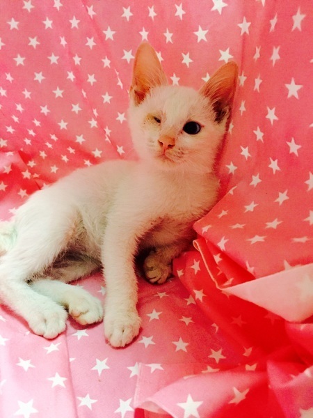 | 特徴(性格など) | 【仮名】ユリアくん 【性格】ブルーの可愛い目をした男の子です。遊ぶのも好きですが、人の側にいるのが好きで撫でて~と寄ってきます。抱っこも大好き!目に障害がありますが毎日元気です。 |