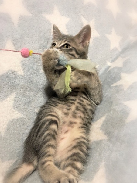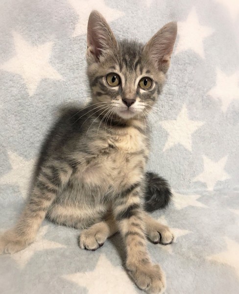 | 特徴(性格など) | 肌色がかったグレーしましまの男の子。 初の場所や初対面でも好奇心旺盛。全く怖がる事のない大らかさん。 のんびりした性格で、他の描とも仲良く過ごしています。 |