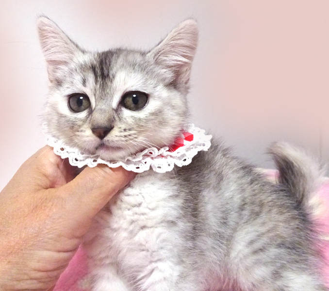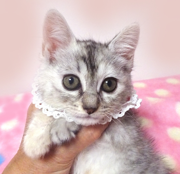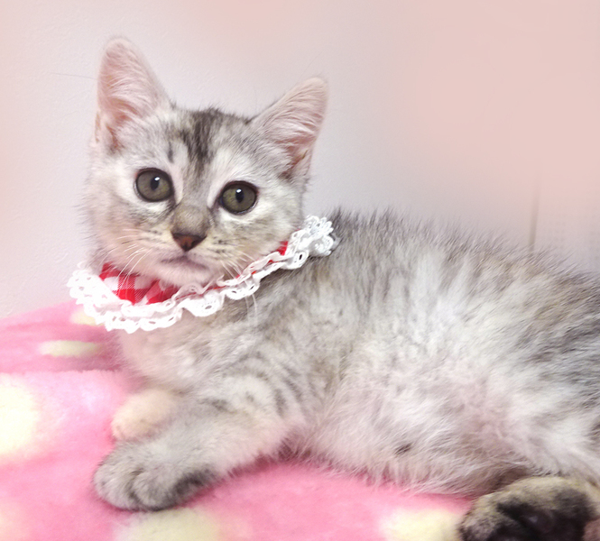 | 特徴(性格など) | 【猫の仮名】 ノアちゃん (担当 松嶋) 【毛色・柄】 めずらしいシルバーキジトラ、短いシッポ コロコロして可愛い女の子です♪ 乳飲み子から育てたので大変人慣れしています♪ 猫を飼うのが初めての方でも大丈夫です♪ 走っても大丈夫なペット可のお住まいで、家族の一員として生涯大切にして下さるご家族を募集しています。 猫だけのお留守番が長時間でないご家族を希望します。 |
