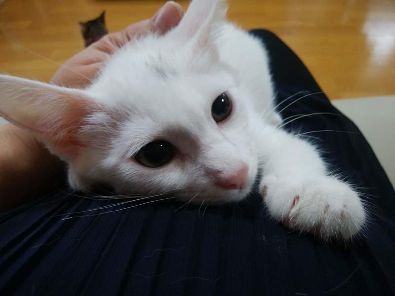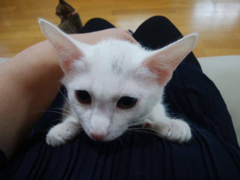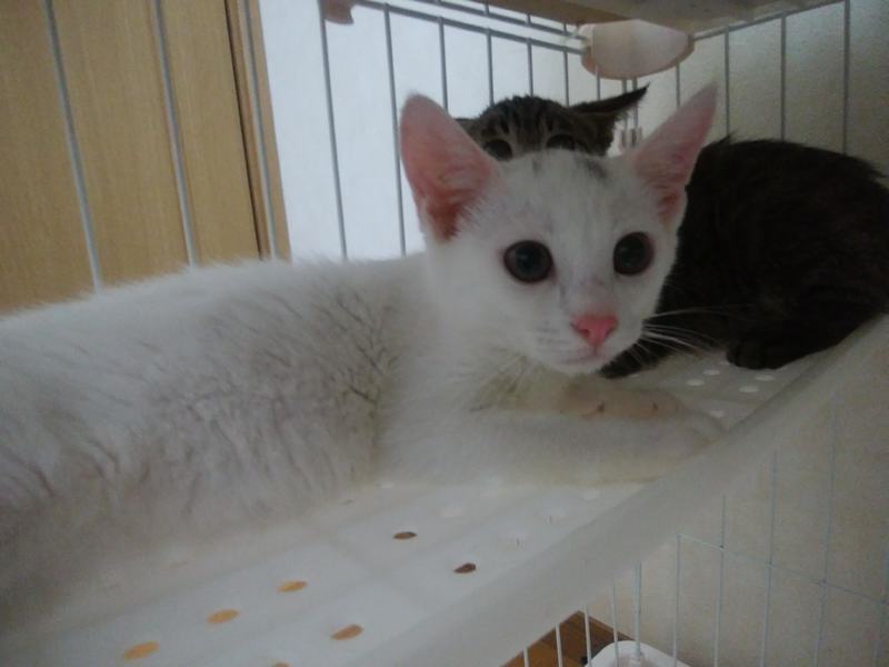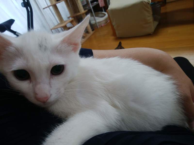 | 特徴(性格など) | 全体的に白いですが額に少しグレーが入ってます。 ビビリですが、好奇心旺盛なやんちゃな子です。 食欲も旺盛で一番に食べに来ます。 おもちゃで遊ぶのも大好きです。 ノミダニ駆除、駆虫済、ワクチン2回済、エイズ・白血病陰性 |
