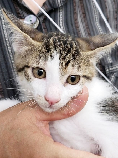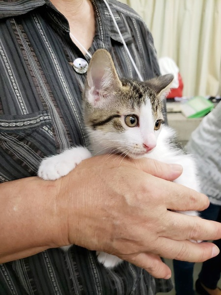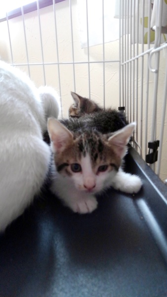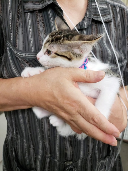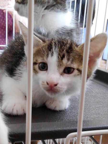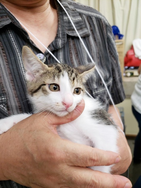 | 特徴(性格など) | 【仮名】さくら 【性格】 キジ白 とても人馴れしています。 一番小さいですが、元気いっぱい遊んでいます。 兄弟姉妹4匹ともにキジ白でよく似ています。 アシンメトリーのハチワレ(左側が長い)。鼻は模様なしのピンクです。 保護した時、目やにで左目がふさがっていましたがきれいになりました。 まだ子猫なので、なるべくお留守番の時間が少ないご家庭が希望です。 生まれてから片時も離れたことがないので 兄弟姉妹もも、ケイ、モクと2匹一緒に家族にしていただけたら…と思っています。 |