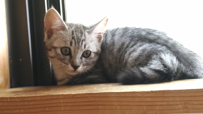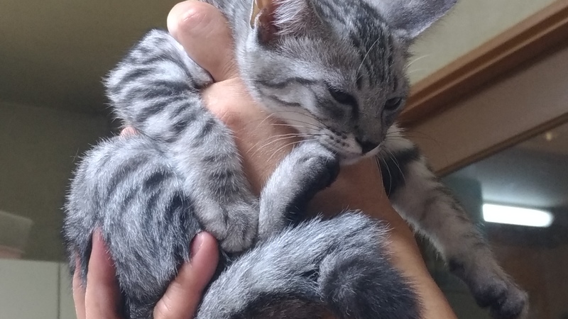 | 特徴(性格など) | グレーの毛色のサバトラ しっぽは長めで途中から曲がってます。 人に対しては、少し臆病なところもありますが、徐々になれます。 猫にはとてもフレンドリーで、2頭目としては仲良くやっていけます。 |