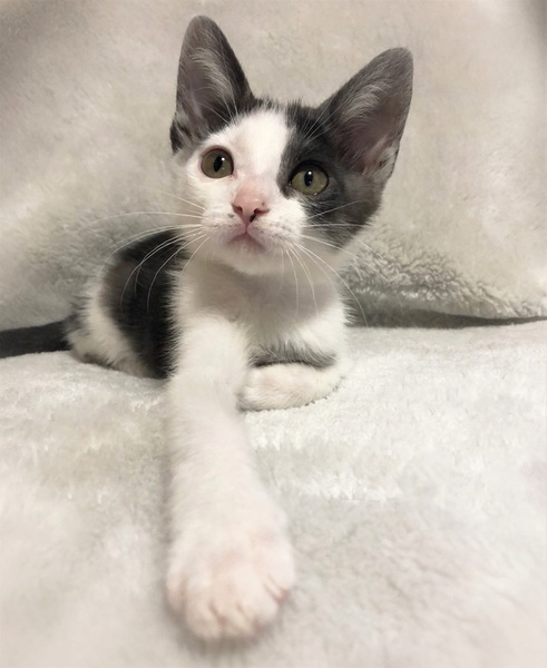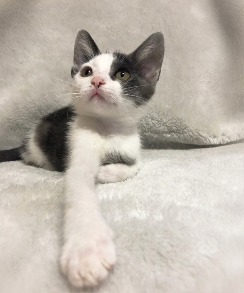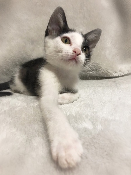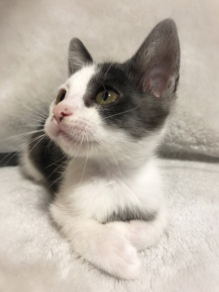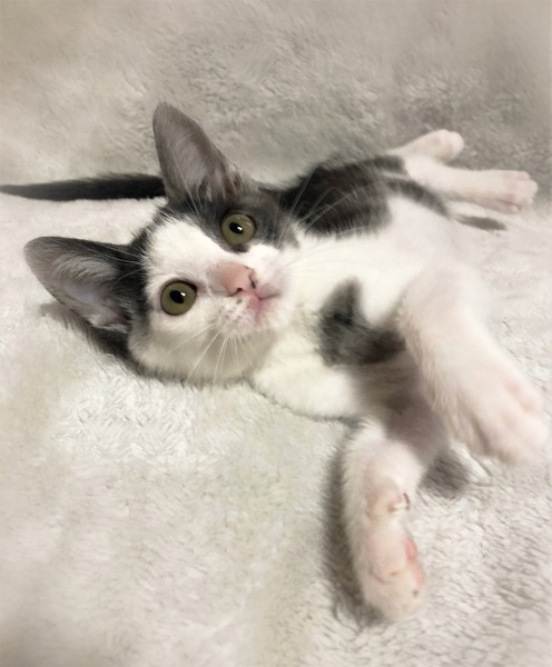 | 特徴(性格など) | つるりとした被毛、ひょっこりした小さい女の子。 スモークグレー(地の色が白・被毛の色淡い黒) 好奇心旺盛で運動神経の良い子。 なんとなく視線を感じてそちらを見ると、人の動きをじっと観察しています。 |