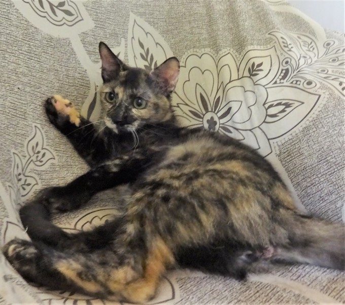 | 特徴(性格など) | 仮名: 夏海(なつみ)メス 毛色: さび猫 性格: 普段は大人しく、威嚇もなく、抱っこ出来ます。自分から膝に乗ってきたり、お腹に乗ってきたり、抱っこをせがんだり、とても甘えん坊で抱っこ好き! 他猫ともうまく付き合え、子猫には優しく、人も大好きな、性格はなまるの子で、猫初心者の方にも飼いやすい子だと思います。 のみ取り済 検便済 駆虫済 3種混合ワクチン済 猫エイズ・白血病ウィルス検査はともに陰性です。 |
