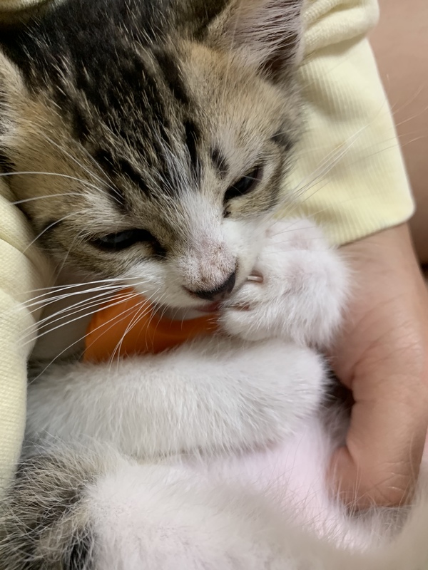 | 里親募集する理由 | 先月何時間も1匹でいるところを保護し迎え入れました。 我が家には先住猫がいたのですがすぐに子猫を受け入れてくれて仲良くしてくれたのですが最近先住猫がトイレを外すようになり、嘔吐までするようになりました。 我が家もそんなに広いわけではなくまた私一人暮らしのため先住猫優先にしていたつもりが甘え盛りの子猫に付きっきりってこともあってしまい先住猫は平気だと思っていても相当ストレスを与えていたのだと反省しています。 とはいえ、たった1ヶ月ではありましたが我が子同然に子猫を愛し生涯ずっと一緒に居ようと思っていました。 ですが先住猫、子猫のことを思うと私の身勝手な気持ちでこのまま一緒に飼うのはと思いこうした決断に至りました。 |