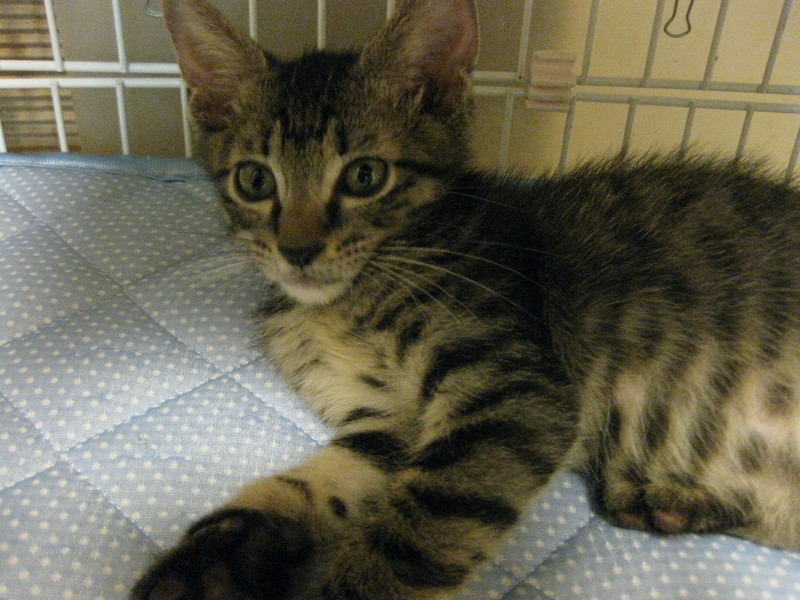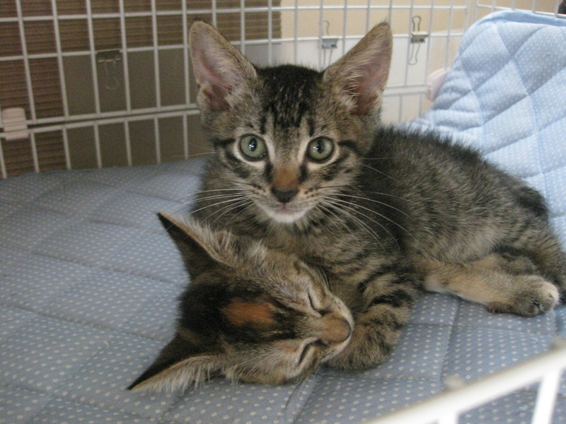 | 特徴(性格など) | 仮名: 賢人(ケント)オス 毛色: キジトラ 性格: 威嚇なく、抱っこ出来、甘えん坊です。 兄妹のセイラちゃんとにゃんプロしていますが、すばしっこさでは負けています。 一歩先ゆく、セイラちゃんとはピッタリの組み合わせ。 仲良し兄妹ですので2匹一緒にお迎えくださるご家庭を希望いたします。 同じ月齢の子より小さめです。 安心のために留守番の時はケージをお使いになる事をお勧めします。 のみ取り済 検便済 駆虫済 3種混合ワクチン済 猫エイズ・白血病ウィルス検査はともに陰性です |