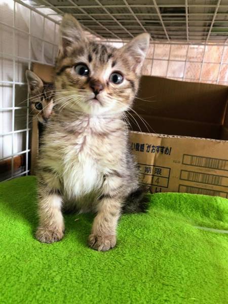 | 特徴(性格など) | 【諸事情により、当サイト内でのお申し込み、およびご質問は受け付けておりません。以下をお読みになり、お申込みはリンク先からアンケートご回答にて、または里親会会場でお願いいたします。また、ご質問はおーあみ避難所里親さま募集係までメールでお送りください(ooamishelter.boshu@gmail.com)。 お手数をおかけしいますが、どうぞよろしくお願いいたします】 ◆ノーベルくん ○生後2ヶ月くらいのキジトラの男の子です。 ○人馴れしており、スリゴロです。 ○少し多目の毛量がとても触り心地がよさそうです。 ○同じく里親募集中の「カンロ」とは仲の良い兄妹です。 ○元気にすくすく育っています。 ○まだ小さな仔猫のため、お留守番の少ないおうちをお待ちしております。 ★ワクチンは近日接種予定。 ★血液検査、不妊手術等は発育と体調をみて適宜おこないます。 ○7/14(日)開催の譲渡会に参加予定!下の要項をお読みいただき、ぜひ会いに来てください♪ ☆★☆★☆★☆★☆★☆★☆★☆★☆★☆★☆★☆★☆★☆★☆★☆★☆★☆★☆ ~7月14日(日)市ヶ尾にて譲渡会開催!~ ◎場所・・「東急ドエル市ヶ尾プラーザビル2階集会場」 神奈川県横浜市青葉区市ヶ尾町1154-2 田園都市線「市ヶ尾」駅西口より徒歩約2分 ◎日程・・7月14日(日)(雨天決行) ◎時間・・13時から16時(受付は15時30分まで) (会場に利用可能な駐車場はございません。近隣のコインパーキングをご利用ください。) ■当日ご来場の方全員にアンケートを記入して頂きます。 ■下記リンクより事前にアンケートをご記入いただくと、待ち時間が短縮されます。 ★ 猫ご希望のかた向けアンケート https://goo.gl/ZNRFtI ★ 犬ご希望のかた向けアンケート https://goo.gl/pwWUMj ■アンケートで頂戴した個人情報は適切に管理し、里親さま決定のための資料としてのみ使用いたします。 ■アンケートをご提出いただいても、譲渡をお約束するものではないことをご承知置きください。 ※お問い合わせのあった犬猫を優先的に譲渡会へ参加させる予定です。 ※参加予定の猫・犬は体調により参加できない場合があります。ご了承ください。 ※詳細はお問い合わせいただくか、ブログ・HPをご覧くださいませ。 おーあみ避難所HP http://f20km-petrescue.org 福島原発20キロ圏内 犬・猫救出プロジェクト http://dogcatrescueproject.blogspot.jp/ ☆★☆★☆★☆★☆★☆★☆★☆★☆★☆★☆★☆★☆★☆★☆★☆★☆★☆★☆ |